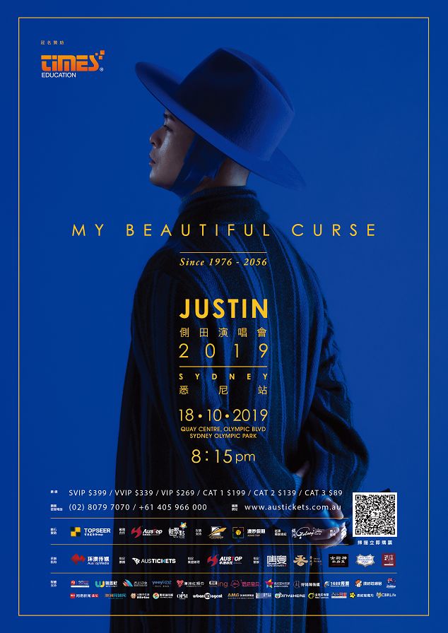 就在今天,让我们怀着激动的⼼情期待由GalaxyWorld Entertainment银河世界娱乐作为独家巡演经纪,环澳传媒全程承办,TIMES EDUCATION冠名赞助的2019年侧田《My Beautiful Curse》全球巡演悉尼站能够圆满举行!